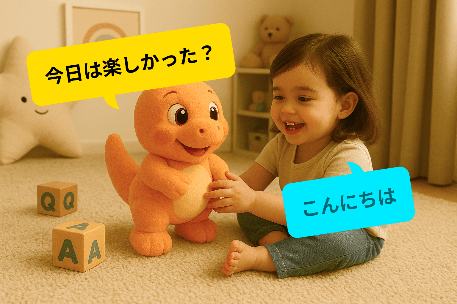 Tinybuddy, the smart plush toy, accompanies children through fun interactions. Through conversations and games, it enables children to learn a second language naturally in a relaxed atmosphere.