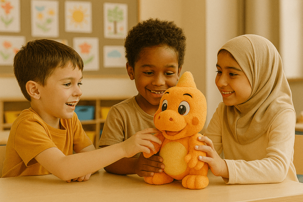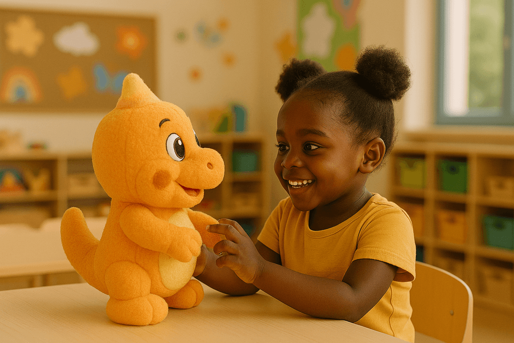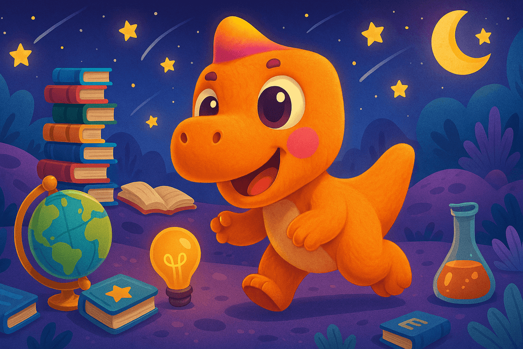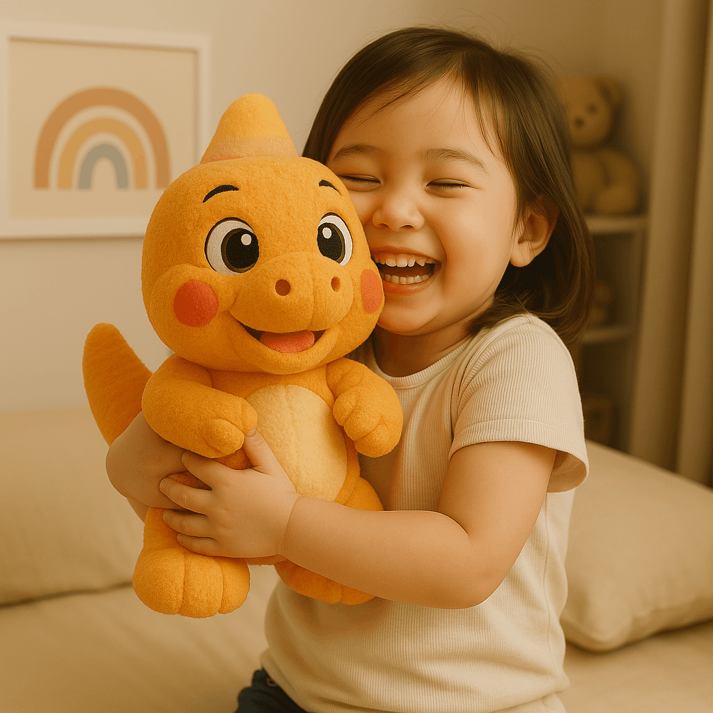 In the heart of a sun-drenched, enchanted realm lies Shining Valley—a land where rainbows streak the sky, rivers shimmer with stardust, and dinosaurs like Sparky thrive in playful harmony. Sparky, the bright orange "flame-headed" dinosaur, is the valley’s spirited guardian of joy and discovery. With a head that glows softly at night, Sparky spends its days guiding lost friends home, sharing hilarious tales of adventures (like rescuing a mischievous firefly from a ticklish flower!), and teaching everyone—dinosaurs and humans alike—how to say "nǐ hǎo" (hello) and "xièxiè" (thank you) in Chinese.