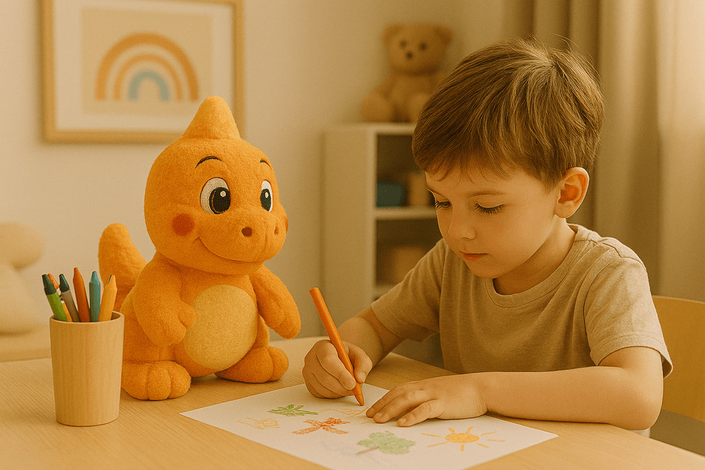 But life in Shining Valley isn’t all smooth scales! Sparky’s endless curiosity often leads to zany mishaps, like accidentally turning a pile of rocks into a glittery obstacle course or mistaking a sleeping dragon for a cozy cave. Yet, with a heart full of kindness and a tail that wiggles with determination, Sparky always finds a way to turn chaos into laughter. Whether dancing under the moonlit sky, collecting shimmering stones for its treasure trove, or comforting a scared baby dinosaur during a thunderstorm, Sparky proves that even the smallest heroes can light up the world—one playful step at a time.